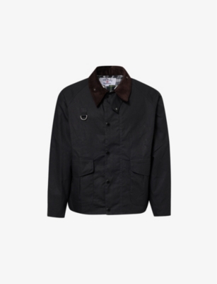 black/grey cotton denim patchwork design embroidered logo to the front classic collar front button fastening long sleeves buttoned cuffs curved hem