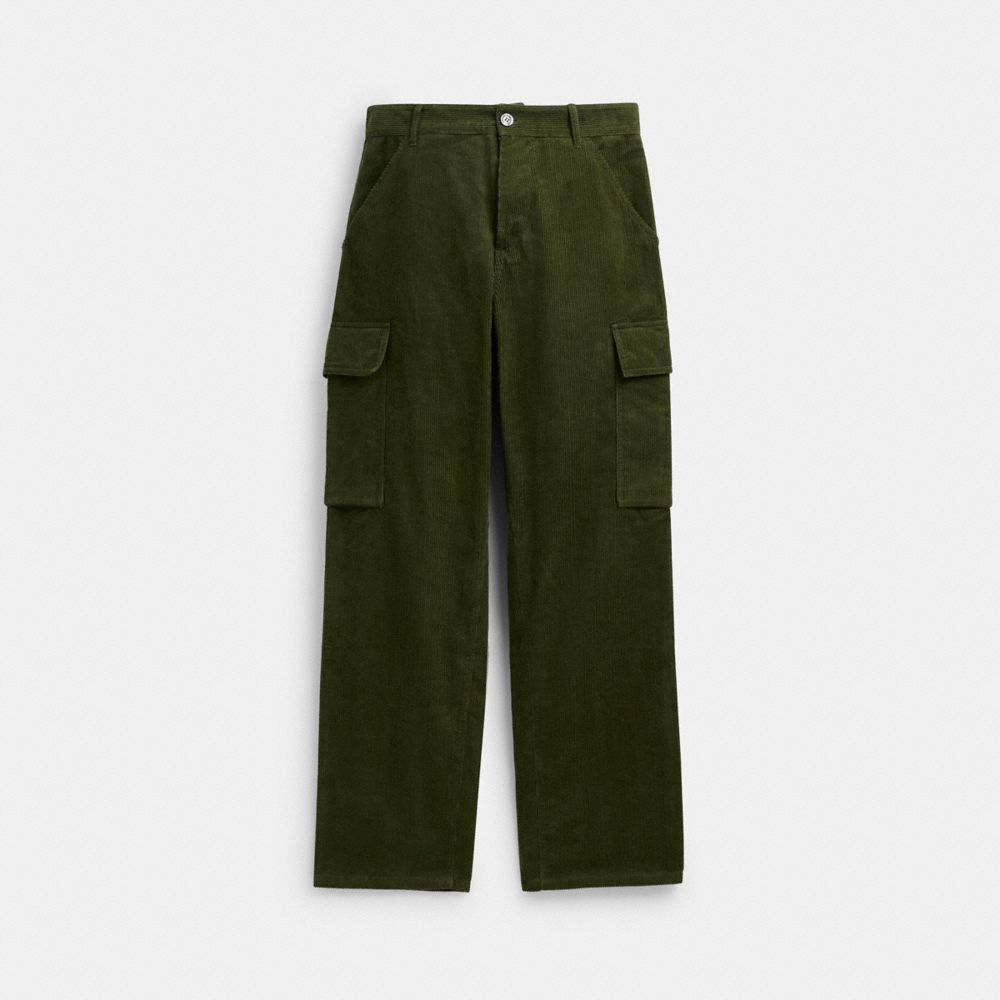 An elevated take on a military-inspired style these cargo pants are crafted of soft corduroy. Featuring a straight-leg silhouette and oversized utility pockets the sporty style is finished with a leather back patch and a Coach woven flag for a heritage touch. COACH?? Men’s Corduroy Cargo Pants in Green, Size 34 100% Cotton