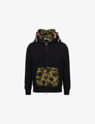A Bathing Ape cotton hoody100% cottonZip fasteningRelaxed fit, hooded, dropped shoulders, long sleeves, camouflage Shark design, ribbed trimsMachine wash mildModel is 6ft 2in/1.88m and wears a size mediumMidweight, slight stretch