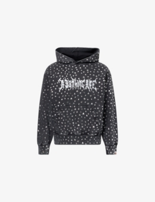 A Bathing Ape cotton-jersey hoody100% cottonRelaxed fit, hood, long sleeves, kangaroo pocket and brand print at front, all-over studs embellishment, ribbed trimsHand wash coldModel is 6ft 2in/1.88m and wears a size mediumMidweight, slight stretch