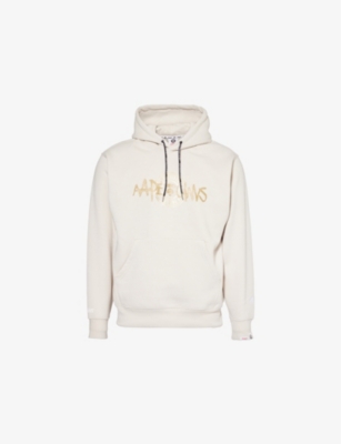AAPE cotton-blend hoody68% cotton, 32% polyesterPulls onRegular fit, hood with drawstring, long sleeves, foiled and glitter embellished graphic print at front, kangaroo pocket at front, ribbed trimsHand washModel is 6ft 2in/1.88m and wears a size mediumMidweight, non-stretch