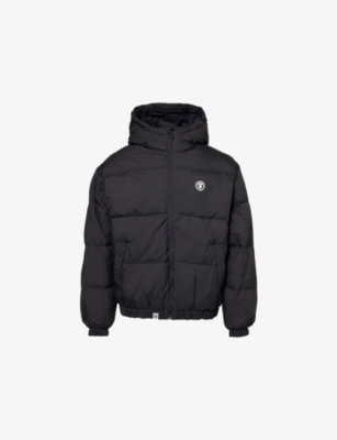 A Bathing Ape down-fill shell jacket100% nylon; filling 80% down, 20% feathersExposed zip fastening at frontRelaxed fit, hood, long sleeves, elasticated cuffs, rubberised brand patch at chest, welt pockets at front, brand embroidery at pocket, all-over quilted padding, brand patch at back, elasticated hem, brand tab at hem, fully linedHand wash coldSize medium: length 26in / 66cm, chest 46in / 117cmModel is 6ft 2in/1.88m and wears a size mediumMidweight, non-stretch