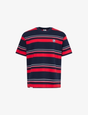 AAPE cotton t-shirt100% cottonRelaxed-fit, short-sleeves, crewneck, ribbed collar, all-over stripe print, embroidered brand-batch at sleeve, embroidered logo-patch at frontHand washModel is 6ft 2in/1.88m and wears a size mediumLightweight, non-stretch