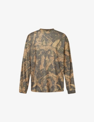 Acne Studios cotton-jersey T-shirt100% cottonPulls onRelaxed fit, crewneck, dropped shoulders, long sleeves, all-over camouflage pattern, brand patch at backMachine wash at 30°CModel is 6ft 2in/1.88m and wears a size mediumMidweight, non-stretch