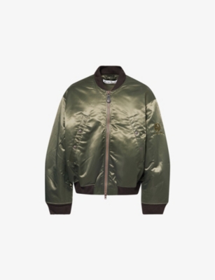 Acne Studios satin bomber jacket100% nylon; filling 100% polyester; lining 100% polyesterExposed zip fastenings at frontRegular fit, ribbed band collar, long sleeves, two side press-stud slip pockets, ribbed trims, interior logo patch, fully lined, satin finishDry cleanSize medium: length 30in / 76cm, chest 56in / 142cmModel is 6ft 2in/1.88m and wears a size mediumHeavyweight, non-stretch