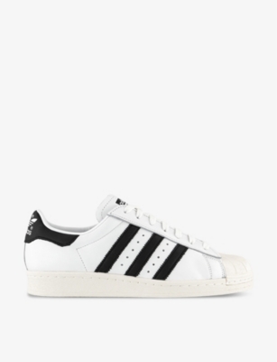 adidas leather trainers100% leatherLace-up fasteningRound toe, flat sole, shell toe, three-stripe embroidery at the side, brand-print at tongue, low top, contrast panelsSpecialist leather cleanUpper: 100% leatherLining: 100% leatherSole: 100% rubber