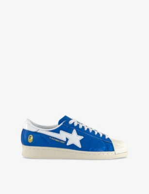 adidas x BAPE leather trainers100% leather; 100% syntheticLace-up fasteningClosed round toe, low-top silhouette, camouflage-embossed upper, contrasting toe cap, branded metal plaque at laces, asymmetric branding at sides, adidas branding at left side, BAPE star branding at right side, gold foil Ape Head branding at lateral heelWipe with a clean, dry clothUpper: 100% leather; 100% syntheticLining: 100% textileSole: 100% rubber