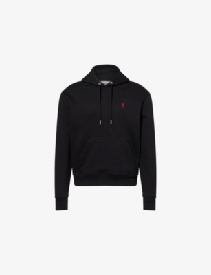 AMI Paris cotton hoody99% cotton, 1% elastaneRegular fit, metal-tipped drawstring hood, long sleeves, embroidered logo at front, kangaroo pocket at frontMachine wash at 30°CMade in PortugalTrue to sizeModel is 6ft 2in/1.88m and wears a size smallMidweight, non-stretch