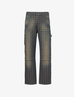 Amiri cotton denim jeans100% cottonButton and zip-fly fasteningStraight leg, four pockets, belt loops, all-over monogram logo pattern, branded hardware, logo patch at backMachine wash at 30°CMade in ItalySize UK 32: rise 13in / 33cm, inside leg 33in / 83cm, leg opening 18in / 45cmModel is 6ft 2in/1.88m and wears a size UK 32Midweight, non-stretch