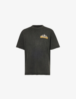 Amiri cotton T-shirt100% cottonPulls onRelaxed fit, crew neck, short sleeves, crystal logo embellishment at chest, straight hem, detressed hems Hand washMade in ItalyModel is 6ft 2in/1.88m and wears a size mediumLightweight, non-stretch