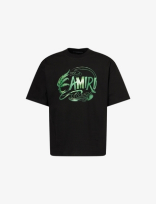 AMIRI cotton-jersey T-shirt100% cottonRegular fit, crewneck, short sleeves, graphic print at front and backDry cleanMade in ItalyModel is 6ft 2in/1.88m and wears a size mediumLightweight, slight stretch