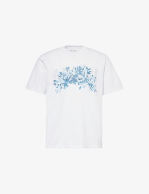 AMIRI cotton-jersey T-shirt100% cottonPulls onRegular fit, round neck with ribbed trim, short sleeves, logo print with graphic at chest, straight hemDry clean onlyMade in ItalyModel is 6ft 2in/1.88m and wears a size mediumLightweight, slight stretch