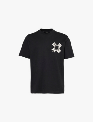 AMIRI cotton-jersey T-shirt100% cottonPulls onRegular fit, crewneck, short sleeves, brand print at chest and backDry cleanMade in ItalyModel is 6ft/1.83m and wears a size mediumLightweight, slight stretch