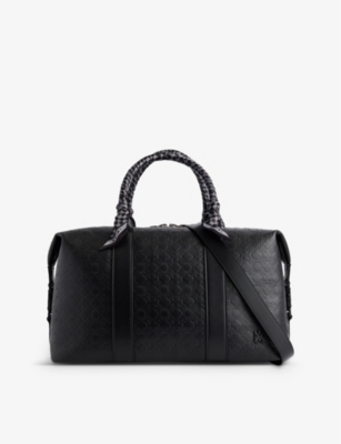 AMIRI leather duffle bag100% leatherZip fasteningRectangular shape, scarf embellishment on double top handles, brand design plaque at sides, all-over geometric pattern, smooth leather, silver-toned hardware, one main compartment, internal zip pocket and foiled branding, fully linedHeight 26.5cm, width 46cm, depth 22cmSpecialist leather cleanComes with a dust bag