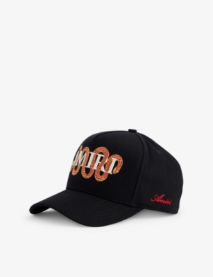 AMIRI cotton baseball cap100% cotton; lining 100% lyocellStrap fastening at backCurved peak, brand and snake embroidery at front, structured panels at front, brand patch at back, eyelets embroidery, all-over canvas texture, internal sweatband and brand tabSpecialist dry cleanMade in USA