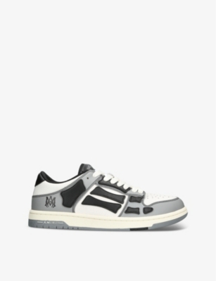 AMIRI leather low-top trainers100% leatherLace-up fasteningLow top, round closed toe, panelled construction, two-tone outsole, branding at tongue and outsole, hand-cut and edge-painted leather bones appliquƩ, moulded footbed, contrast laces, perforated at the frontSpecialist leather cleanUpper: 100% leatherLining: 100% meshSole: 100% rubber