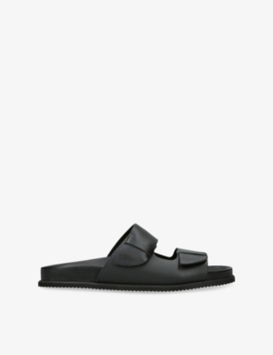 Ancient Greek Sandals leather sliders100% leatherBuckle fasteningOpen round toe, two straps, moulded footbedHandmade in GreeceSpecialist leather cleanUpper: 100% leatherLining: 100% leatherSole: 100% rubber