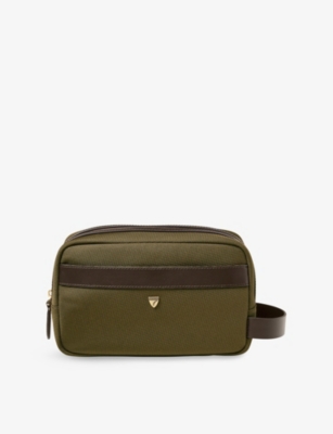 Aspinal of London woven washbag100% nylonZip fasteningRectangle shape, brand-patch at front, exterior slip pocket, side handle, internal zip pocket, tonal stitching, gold-tone hardwareHeight 14.2cm, width 22.9cm, depth 10.7cmWipe with a clean, dry cloth