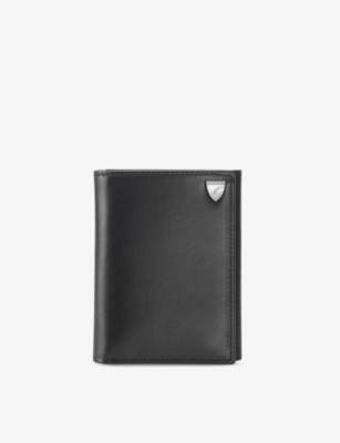 Aspinal of London leather trifold wallet100% leather; lining 100% silkSignature shield rivet, embossed branding, trifold silhouette, six credit card slots, one full-length note pocket, one hidden multi-purpose pocket, one clear ID slotHeight 11cm, width 9cmSpecialist leather cleanMade in UK