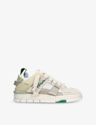 Axel Arigato leather low-top trainers100% leatherLace-up fasteningRound closed toe, cushioned footbed, perforated sole, chunky laces, perforated panels, logo at side, brand patch at tongue, contrasting heel spoiler, heel clipSpecialist leather cleanUpper: 100% leatherLining: 100% fabricSole: 100% synthetic