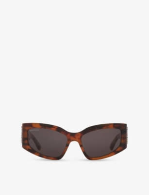 Balenciaga acetate sunglassesStyle number: B0321SFrame 100% acetate; lens 100% bio polyamide100% UV-protected lens, logo branded sides, gold-toned hardware, tinted lensFrame shape: rectangle Lens width 5.7cm, bridge size 1.7cm, temple length 12.5cmWipe with a clean, dry clothComes with hard case and cloth