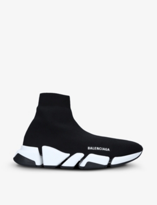 Balenciaga stretch-knit trainers80% polyamide, 20% elastanePulls onClosed round toe, sock design, logo detail, ultra-articulated moulded sole unit, ergonomic sole with No Memory technologySponge cleanUpper: 80% polyamide, 20% elastaneLining: 80% polyamide, 20% elastaneSole: 100% rubberThis style runs large; we recommend sizing down by one size
