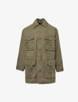 Balenciaga cotton coat100% cotton; lining 100% cottonConcealed zip fastening at frontRegular fit, spread collar, shoulder pads, long sleeves, two flap pockets at chest, two flap pockets at front, linedSpecialist dry cleanMade in ItalySize medium: length 39in / 99.5cm, chest 50in / 127.5cmModel is 6ft 2in/1.88m and wears a size mediumHeavyweight, non-stretch