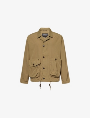 Barbour woven jacket100% polyamideExposed button fastening with concealed zip at frontOversized fit, collar, long sleeves, two patch-pockets at front, draw-cord at hem, contrast buttonsSize medium: length 29.9in / 76cm, chest 49.6in / 126cmModel is 6ft 2in/1.88m and wears a size mediumLightweight, non-stretch