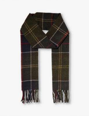 Barbour knitted scarf100% acrylicSelf-tie fasteningAll-over check pattern, soft-brushed texture, tasselled trimsLength 180cm, width 30cmDry clean onlyLightweight, non-stretch