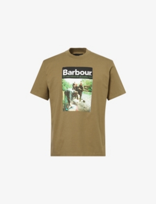 Barbour cotton T-shirt100% cottonRelaxed fit, crewneck, dropped shoulders, short sleeves, graphic print at front, text print at back neck, straight hemMachine wash mildModel is 6ft 2in/1.88m and wears a size mediumLightweight, non-stretch