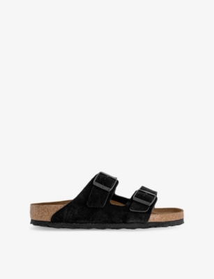 Birkenstock leather sandals100% leatherBuckle fasteningRound open toe, double straps at front, logo engraved buckles, contrast padded foot bed, raised-ribbed sole, metal hardwareSpecialist leather cleanMade in GermanyUpper: 100% leatherLining: 100% suedeSole: 100% ethylene vinyl acetate