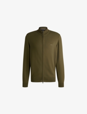 BOSS cotton-knit cardigan100% cottonExposed zip fastening at frontRegular fit, stand collar, long sleeves, brand embroidery at chest, ribbed trims to collar, cuffs and hemMachine wash coldLightweight, non-stretch