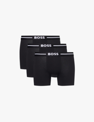 BOSS pack of three stretch-cotton boxer briefs95% cotton, 5% elastanePulls onMid-rise, branded elasticated waistband, supportive panel at frontMachine wash coldModel is 6ft 2in/1.88m and wears a size mediumLightweight, slight stretchFor hygiene reasons, this product cannot be exchanged or refunded, unless faulty.