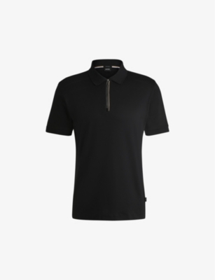 BOSS cotton polo shirt100% cottonPulls onSlim fit, polo collar, short sleeves, contrast trim at zip placket, ribbed trimsMachine wash mildMidweight, non-stretch