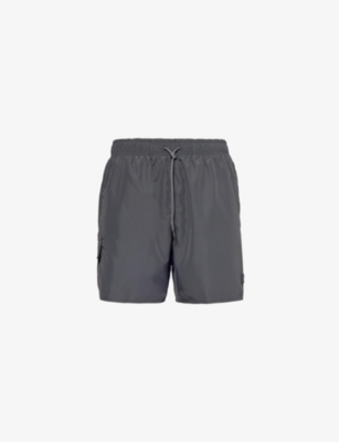 BOSS swim shorts100% recycled polyester; lining 100% polyesterPulls onRegular fit, mid-rise, drawstring elasticated waistband, slip pockets at front, brand rubberised appliqué at front, pocket at back, brand embroidered logo at back, mesh liningMachine wash coldModel is 6ft 2in/1.88m and wears a size mediumLightweight, non-stretch
