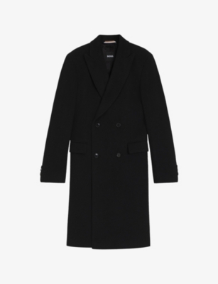 BOSS wool-blend coat70% alpaca, 17% polyamide, 13% woolButton fasteningRegular fit, double-breasted, peak lapels, side pocketsDry cleanTrue to sizeModel is 6ft 1in/1.85m and wears a size mediumHeavyweight, slight stretch