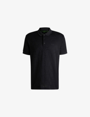 BOSS cotton polo shirt100% cottonExposed button fastening at frontRelaxed fit, collar, short sleeves, all-over geometric-inspired jacquard pattern, rubberised branding at chest, flat-knit trims to collar and cuffsMachine wash coldLightweight, non-stretch