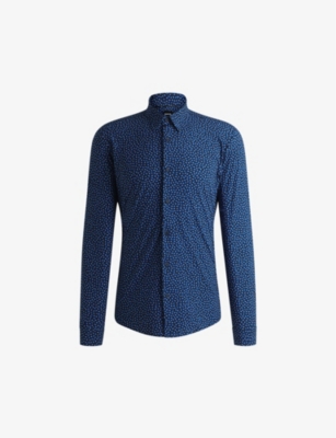 BOSS stretch-jersey shirt76% polyamide, 24% elastaneExposed button fastenings to the frontSlim fit, collar, long sleeves, all-over geometric pattern, round cuffs, performance jerseyMachine wash coldModel is 6ft 1in/1.85m and wears a size mediumLightweight, stretchy