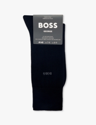 BOSS cotton socks100% cottonPulls onCrew length, ribbed cuffs, brandedMachine wash mildLightweight, slight stretch