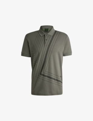 BOSS cotton-jersey polo shirt100% cottonButton fasteningPolo collarRegular fit, collar, short sleeves, fine-line patternMachine wash coldModel is 6ft 2in/1.88m and wears a size mediumLightweight, slight stretch