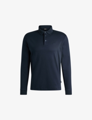 BOSS cotton-jersey polo shirt100% cottonButton fastening at frontRegular fit, ribbed collar, long sleeves, ribbed elasticated at cuffs, brand embroidery at chest, brand tab at side, tonal stitching, split at sides hemMachine wash coldModel is 6ft 2in/1.88m and wears a size mediumLightweight, stretchy