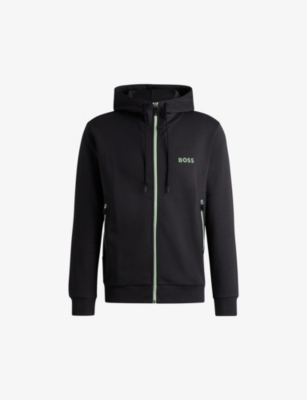 Mens Boss Logo-Embroidered Regular-Fit Cotton Hoody