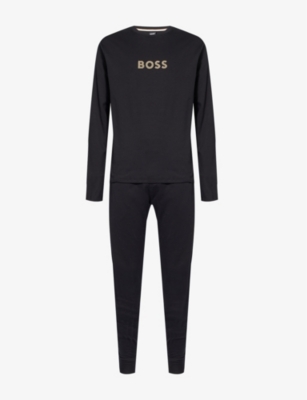 BOSS cotton-jersey pyjama set100% cottonPulls onTop: relaxed fit, crewneck, long sleeves, brand print at chest, ribbed trimsBottoms: relaxed fit, mid rise, tapered leg, elasticated waistband with brand jacquard, ribbed trimsMachine wash at 30°CModel is 6ft 2in/1.88m and wears a size mediumMidweight, non-stretch