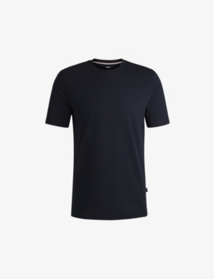 BOSS cotton T-shirt100% cottonPulls onRegular fit, round neck, logo print at the chest, short sleevesMachine wash coldModel is 6ft 1in/1.85m and wears a size mediumLightweight, non-stretch