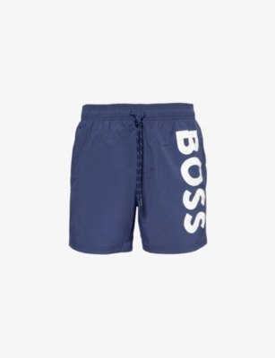 BOSS swim shorts100% recycled polyamide; lining 100% polyester Pulls onRegular fit, mid-rise, drawstring elasticated waistband, slip pockets at front, brand text print at front, pocket at back, mesh liningMachine wash coldModel is 6ft 2in/1.88m and wears a size mediumLightweight, non-stretch