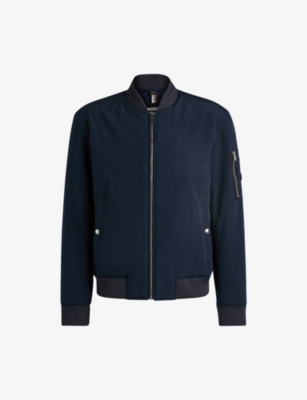 BOSS woven bomber jacket70% polyester, 30% polyamide, lining: 100% polyamideExposed zip fastening at frontRegular fit, ribbed collar, long sleeves, pocket at sleeve, two pockets at the side, ribbed hemDry cleanModel is 6ft 1in/1.85m and wears a size mediumMidweight, non-stretch