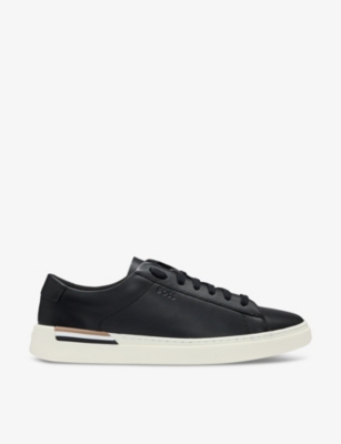 BOSS leather trainers100% cow leatherLace-up fasteningRound toe, distinctive cupsole, signature-stripe and logo detailing, brand debossed textSpecialist leather cleanUpper: 100% cow leatherLining: 100% polyesterSole: 100% thermoplastic polyurethane