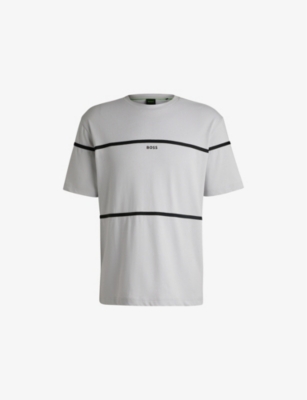 BOSS cotton-jersey T-shirt100% cottonPulls onRelaxed fit, crewneck, short sleeves, striped tape, branding at chest, ribbed trim at necklineMachine wash coldLightweight, non-stretch