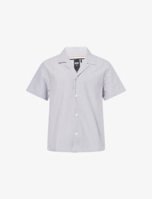 Mens Boss Velvetfish Camp-Collar Woven Shirt