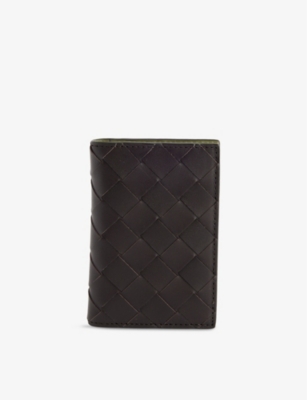 Bottega Veneta leather wallet100% leatherBifold designRectangular shape, all-over intreccio weave, six interior card slots, debossed branding at interiorHeight 11cm, width 8cm, depth 1cmSpecialist leather cleanMade in ItalyPresented in a box, comes with a dust bag